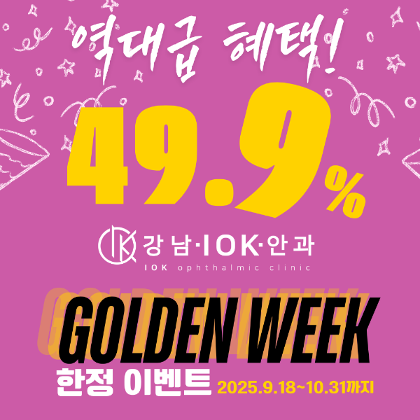 본 포스팅은 '강남IOK안과'의 정보전달 및 의료광고 내용을 포함하고 있습니다. 개인차에 따라 시술 후에 부작용이 있을 수 있으며 수술 전과 후 의료진과 충분한 상담을 받아보시기를 바랍니다.